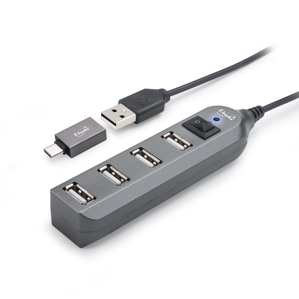 E-books H17 節能開關4孔USB-Hub集線器贈Type C轉接頭