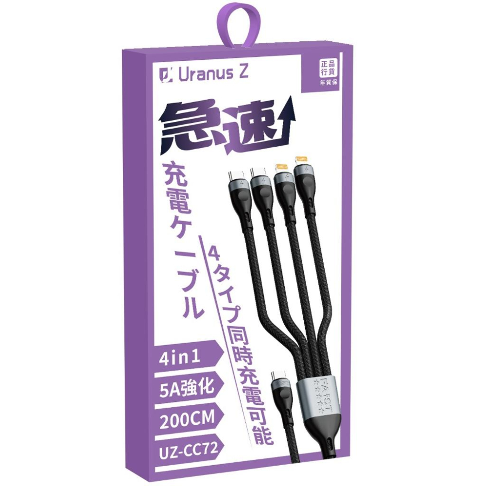 Uranus Z Type C 一拖四數據線CC72-2米100W/27W(CCLL) 多重接頭 一條多用 一拖四充電線
