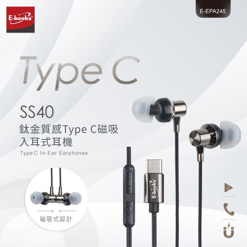 E-books SS40 鈦金質感Type-C磁吸入耳式耳機