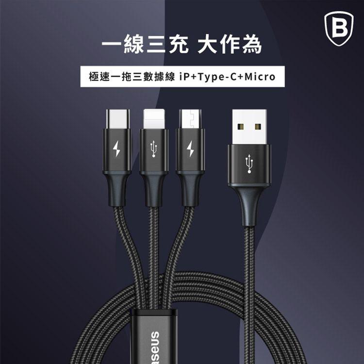 Baseus 極速系列3.5A一拖三傳輸線120cm (兩色:黑/藍)