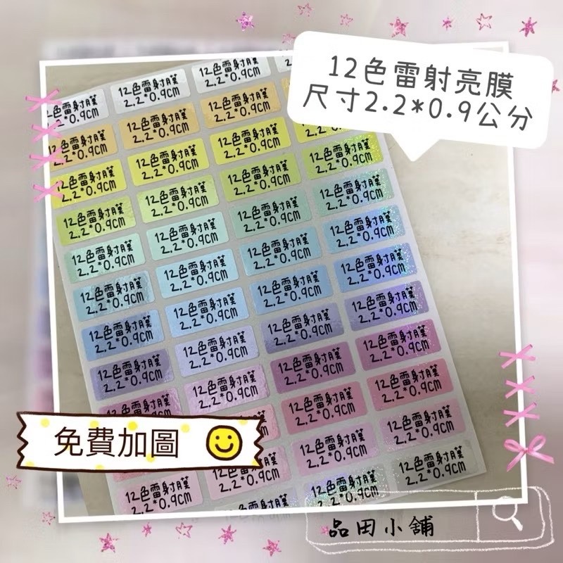 每一小張12色 2.2x0.9cm,只能1行,2行字會過小不建議