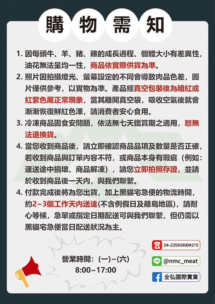 ★經真空包裝,肉品色澤呈暗紅或紫紅色為正常現象