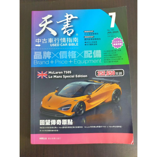 【享讀書房汽1】《天書 7 中古車行情指南 2025年7月 NO.190》雨生文化出版