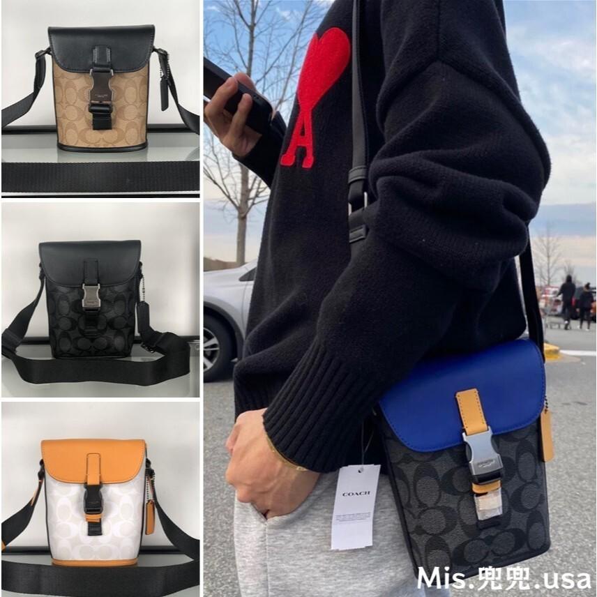 保固 現貨 COACH 蔻馳包包 Mis.兜兜 經典標誌c紋拼皮翻蓋 男生薯條包 單肩斜挎包 水桶包
