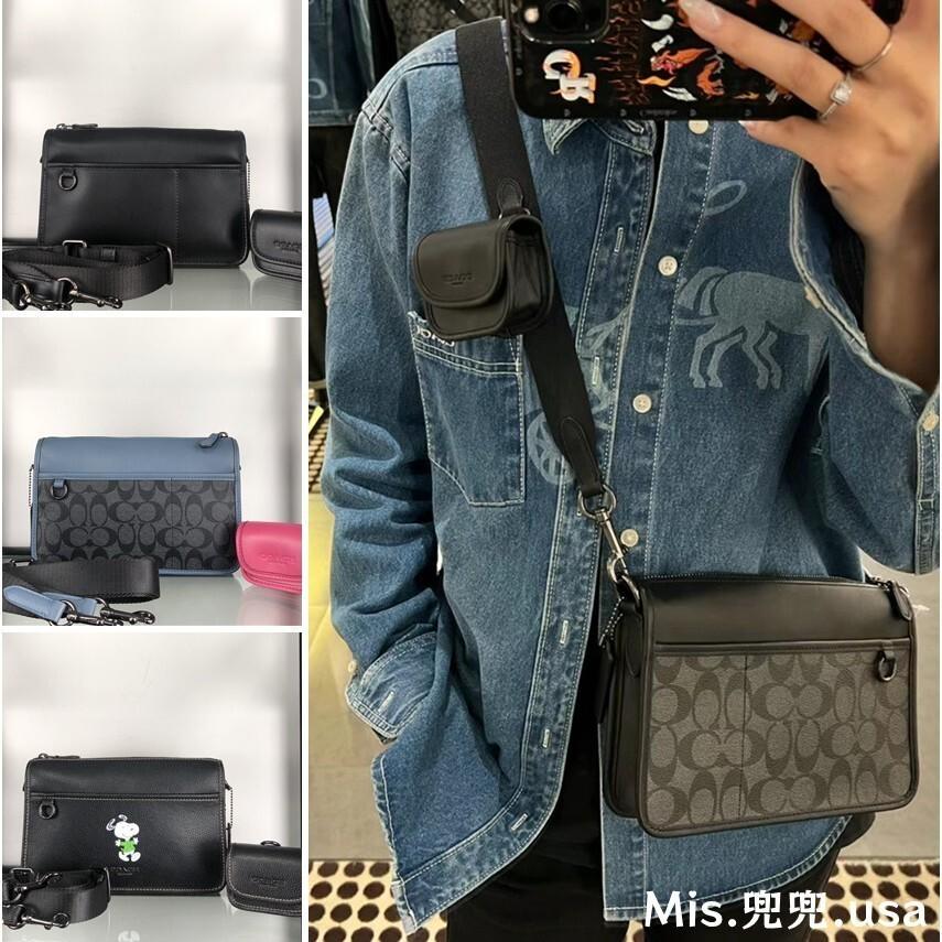 保固 現貨 COACH 蔻馳包包 Mis.兜兜 經典老花男生斜挎包 零錢袋二合一包 單肩包 側背包 男生包包