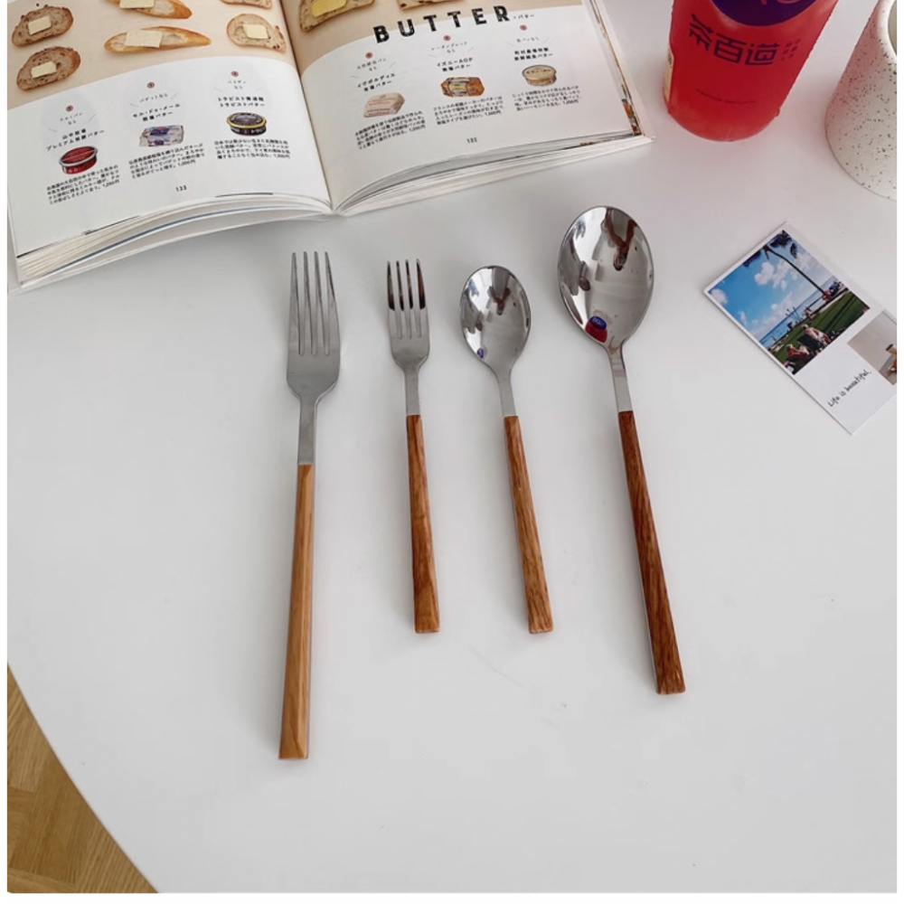 韓式仿木柄刀叉勺優雅餐具