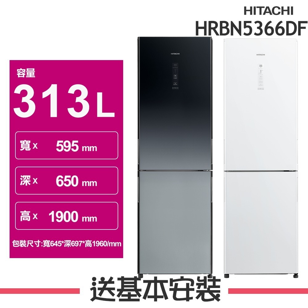 【HITACHI 日立】313L 1級變頻2門電冰箱 HRBN5366DF_(GPWTW琉璃白/XGRTW漸層琉璃黑)