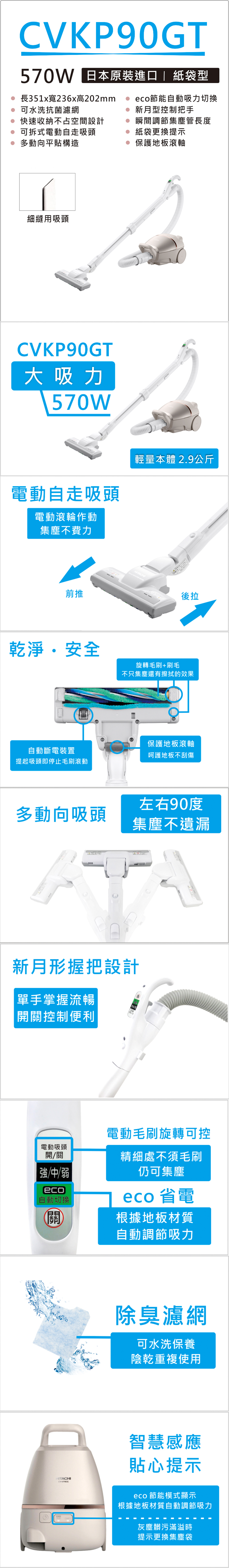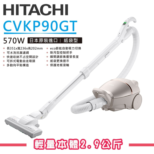 【HITACHI 日立】紙袋型吸塵器 CVKP90GT_香檳金