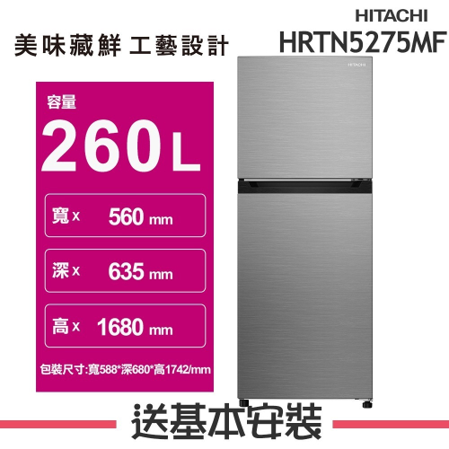 【HITACHI 日立】260L 1級變頻2門電冰箱 HRTN5275MF璀燦銀