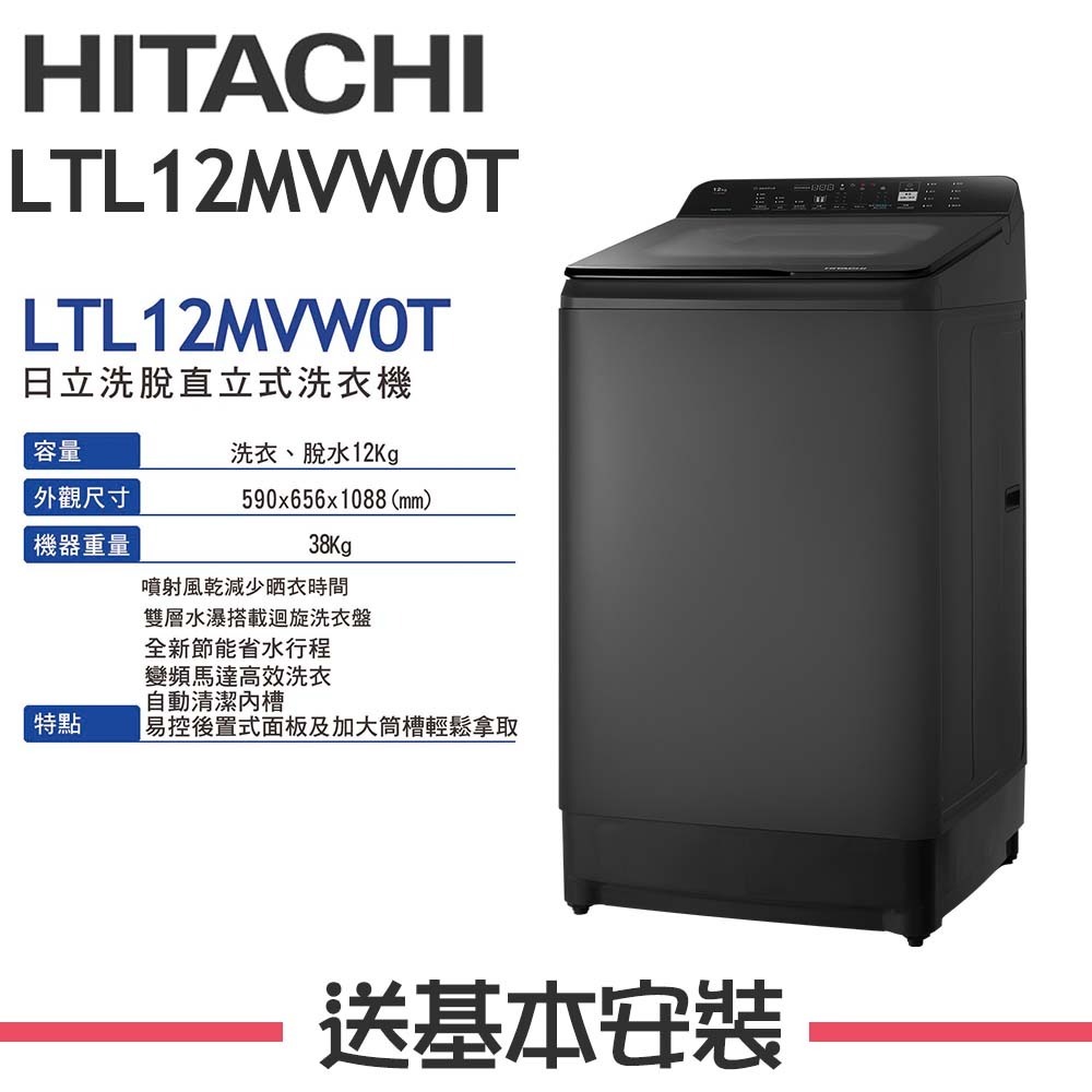 【HITACHI 日立】12KG窄版直立式變頻洗衣機 靜默灰(LTL12MVW0T)