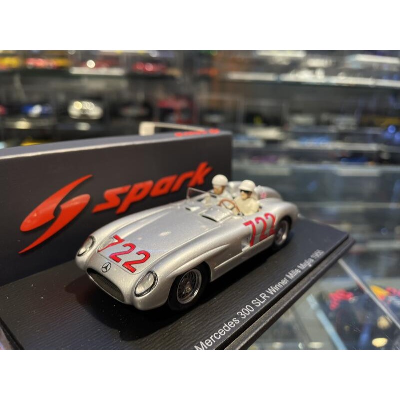 吉華@ 1/43 SPARK S5859 MERCEDES-BENZ 300 SLR NO.722 WINNER MILLE MIGLIA 1955 S. MOSS - D. JENKINSON WITH FIGURINE (樹酯車)