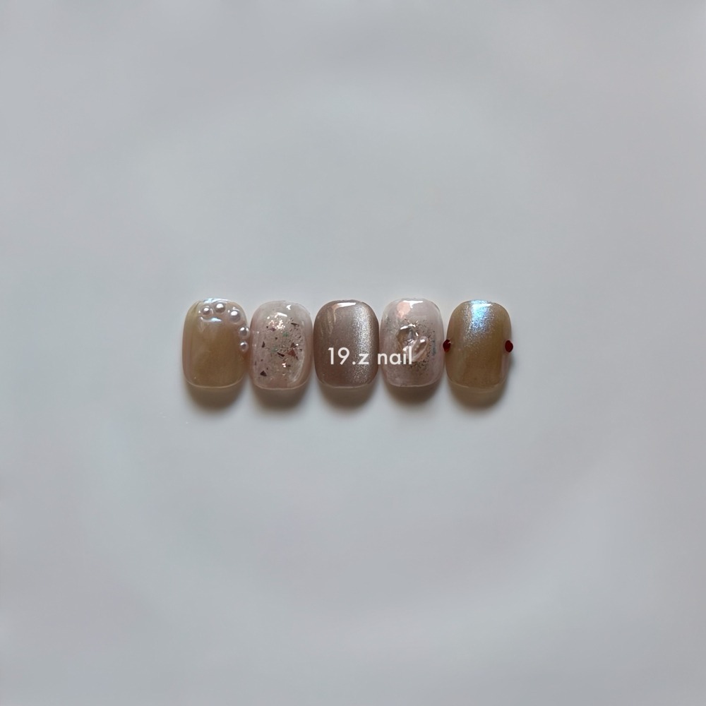 香檳珍珠貓眼|手工穿戴甲|編號:036