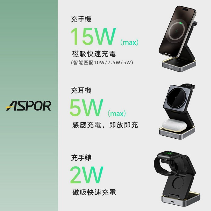 磁吸無線充電一放即充支援三台設備同時充電無需等待