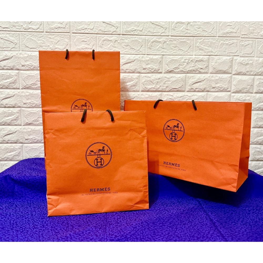 「美玫家」二手精品 HERMES 紙袋 橘色 三入一組 不拆售