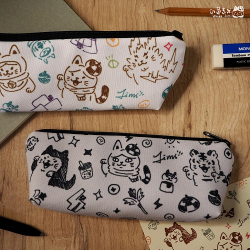 插畫:白色吉米 / 手繪稿 產品資訊 100%純手工台灣製作的三角筆袋。經典T形三角側邊,袋形立體好拿取。