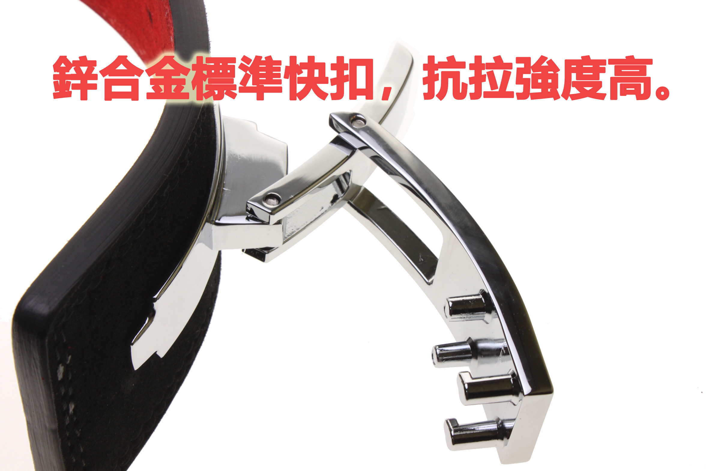 熊牌鋅合金標準快扣理論上強度為RDX錫鉛合金快扣5倍;而熊牌鋅合金速調快扣因為扣頭加大,截面積為2倍,加權後理論上強度約為RDX錫鉛合金快扣10倍。