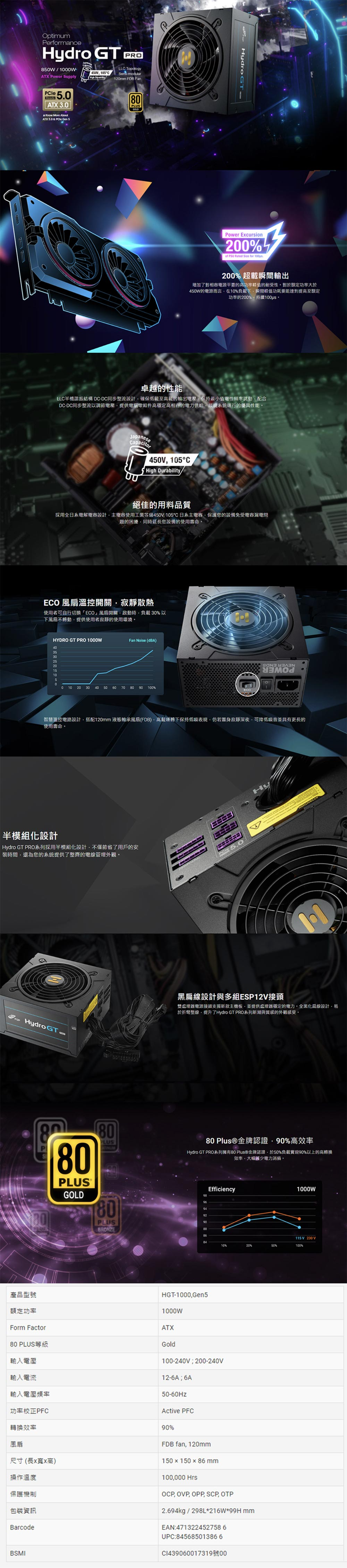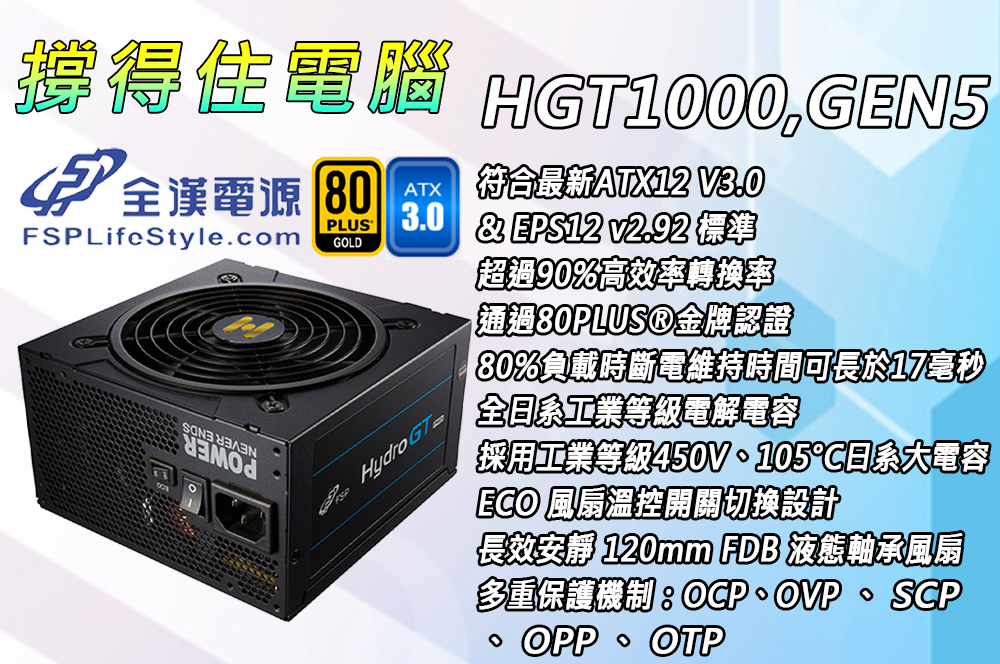 FSP 全漢 Hydro GT PRO 1000W 80PLUS 金牌 電源供應器(含稅,附發票)