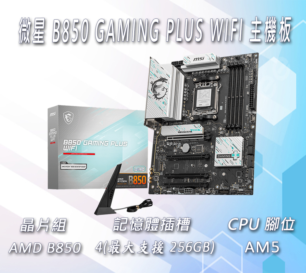 AMD R7-9800X3D+微星 B850 GAMING PLUS WIFI 主機板 (含稅,附發票)