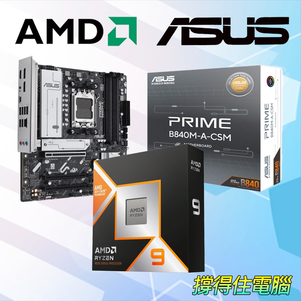 AMD R9-9950X3D+華碩 B840M-A D5-CSM 主機板 (含稅,附發票)
