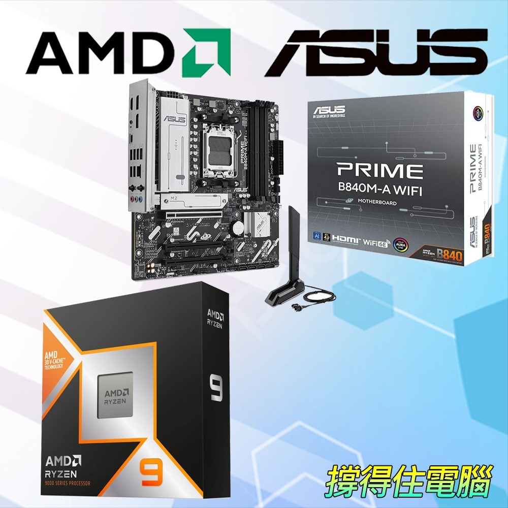 AMD R9-9900X3D+華碩 B840M-A WIFI 主機板 (含稅,附發票)