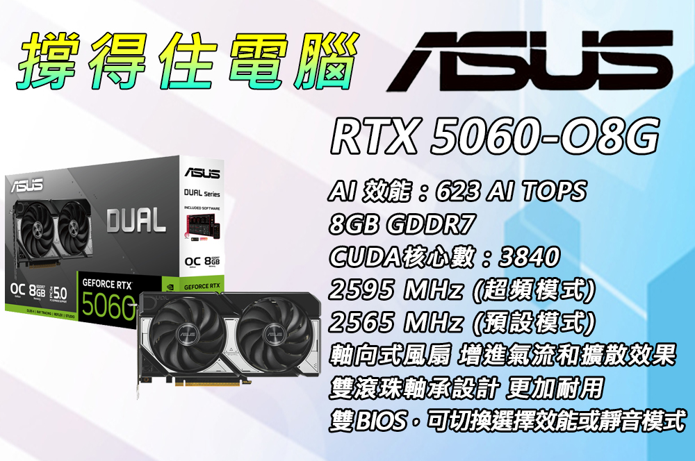 ASUS 華碩 Dual GeForce RTX5060 8GB GDDR7 OC 附送贈品 (含稅,附發票)