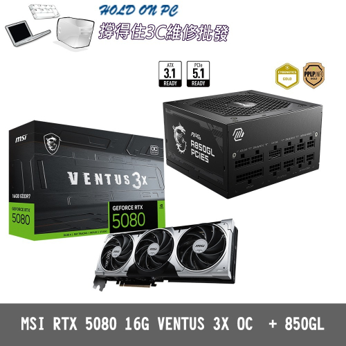 MSI RTX 5080 16G VENTUS 3X OC + A850GL 組合包 含稅附發票