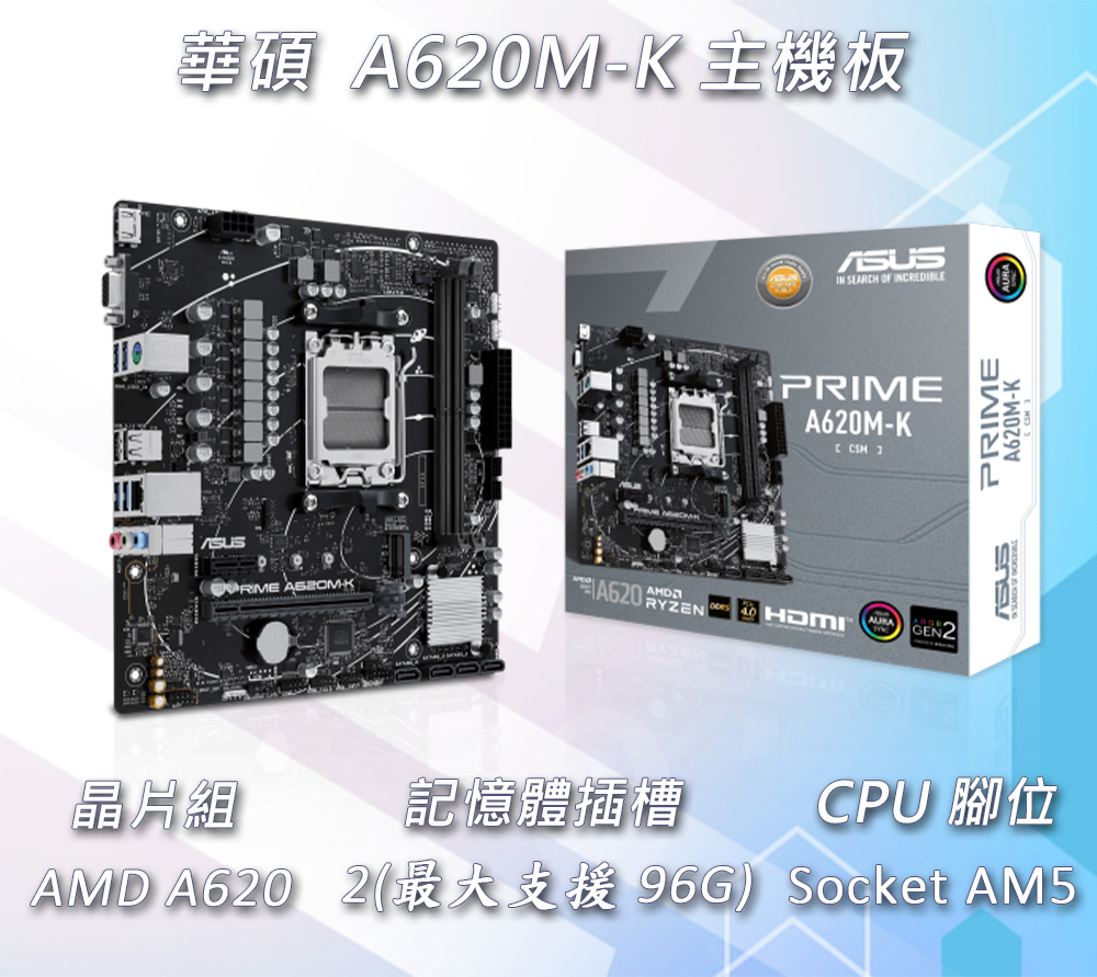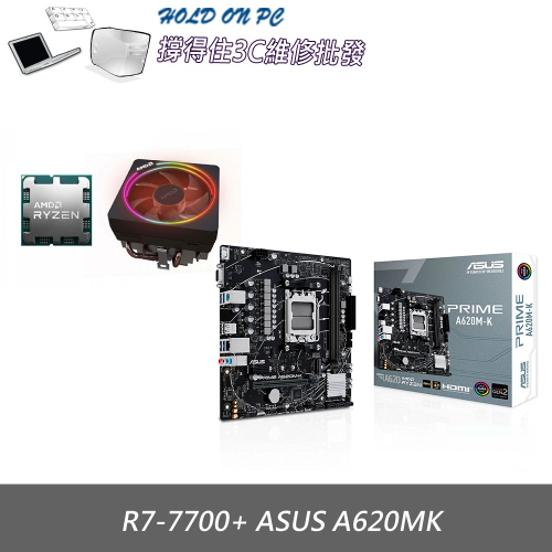 AMD R7-7700 MPK 無彩盒+華碩 A620M-K D5-CSM 主機板 (含稅,附發票)
