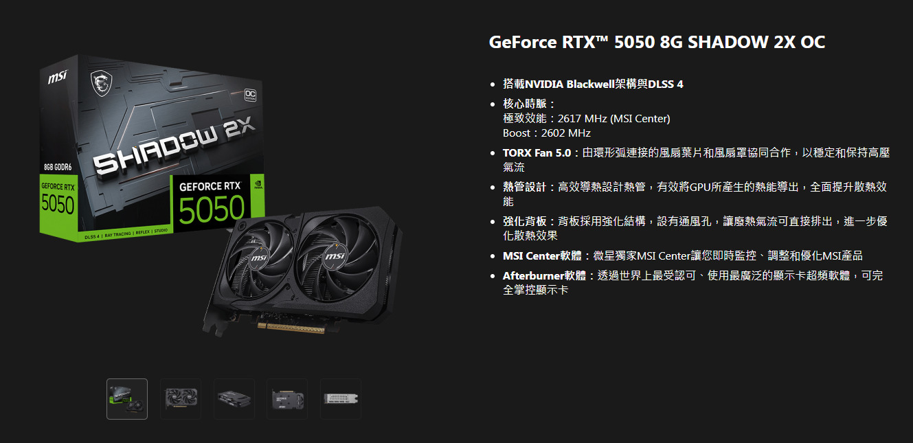 GeForce RTX™ 5050 8G SHADOW 2X OC