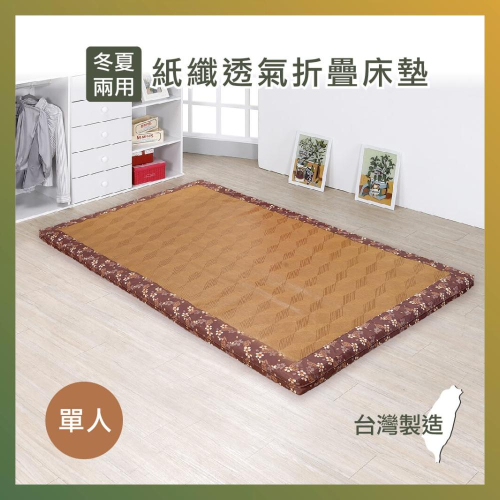 #'床墊#居家#臥室#客房#冬夏兩用#折疊床墊#冬暖夏涼#宿舍#租屋族 【商品特色】 1.堅持台灣製造,品質保證 2.採用台灣孟宗竹蓆,清爽涼快不悶熱 3.聚酯纖維蓬鬆綿,透氣舒適,衛生耐用 4.採用折疊式設計,讓您更容易收納、攜帶 5.貼心的可拆式布套,清洗超便利,符合消費者需求喔! 6.全程製造加工皆為用心的手工機縫絕不是輸送帶製程! 7.雙面床墊設計,一面為竹蓆床面,一面為高級針綿印花布,冬夏日兩用均適宜。 【商品規格】 品名:紙纖透氣床(單人3尺) 顏色:如圖示 材質:聚酯纖維蓬鬆綿、高級針綿印花布 尺寸:3*6 (90*180cm 厚度5公分) 產地:台灣 品名:紙纖透氣床(雙人5尺) 顏色:如圖示 材質:聚酯纖維蓬鬆綿、高級針綿印花布 尺寸:5*6.2 (150*186cm 厚度5公分) 產地:台灣 品名:紙纖透氣床(雙人加大6尺) 顏色:如圖示 材質:聚酯纖維蓬鬆綿、高級針綿印花布 產地:台灣 尺寸:6*6.2 (180*186cm 厚度5公分) 包裝尺寸:長180cm*寬62cm*厚20cm 【注意事項】 配送區域:台灣本島;外島無配送 台灣偏遠地區保留出貨與否的權利 網頁圖片僅為示意圖參考,不含拍攝道具 此商品請勿試用,鑑賞期為鑑賞非試用期 本商品拆封使用後恕不接受退換貨 退貨的商品必須為全新狀態且完整原包裝
