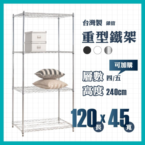 莫菲思【免運】重型四層鐵架120*45*240 四層架 鐵架 衣架 收納架 收納櫃