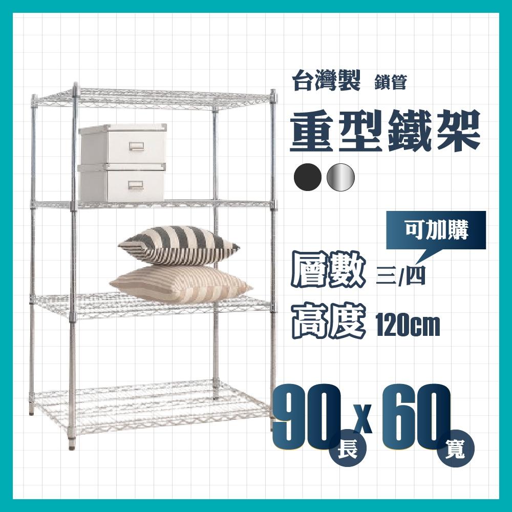!! 可加購層架網片 450 /片 !! 【商品特色】 ※台灣製造,品質保證 ※穩定耐重牢靠,不易晃動 ※電鍍處理,抗腐蝕、耐用耐磨 ※美化空間讓物品更井然有序 ※網片均可自由調整高度,可依您的需求自行組合需要的樣式 【商品規格】 品名:重網90*60*120三層架 顏色:銀 / 黑 產地:台灣 材質:鐵絲、鐵管 尺寸:面寬90cm*深60cm*高120cm(±5%) 產品荷重:靜態平均荷重每層約150公斤左右 管徑:25.4mm -DIY商品- 【注意事項】 配送區域:台灣本島;外島無配送 台灣偏遠地區保留出貨與否的權利 網頁圖片僅為示意圖參考,不含拍攝道具 此商品請勿試用,鑑賞期為鑑賞非試用