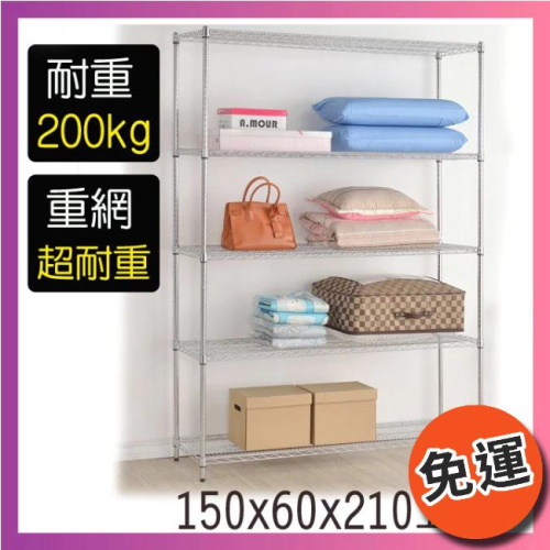【限時免運】莫菲思 台灣現貨 海克力士 重網 五層架 鐵架 置物架 收納架 150*60*210cm