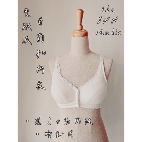 前扣是用四合釦, 它的表面是滿滿的護身, 裡面胸墊是米白兩用被, 直接車在裡面了~ 不用再加胸墊 👀