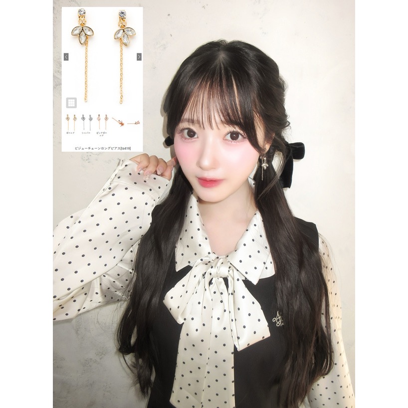 繊細な輝きを放つビジューで、顔周りをグッとラグジュアリーに魅せてくれるロングピアス。