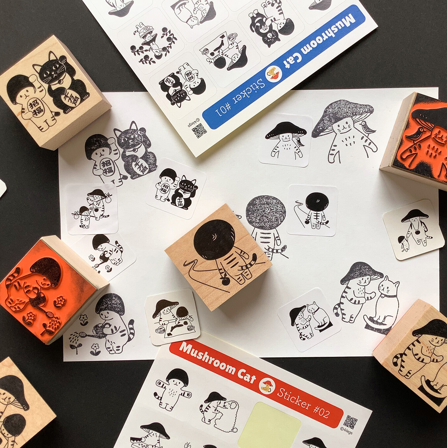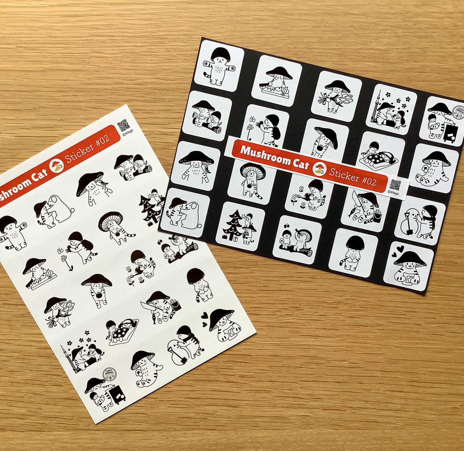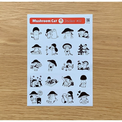 此款貼紙描述了蘑菇貓有趣的日常生活