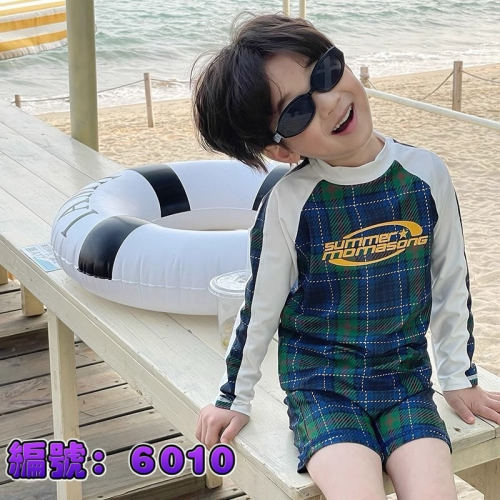 男童款 長袖速乾分體泳裝 -帶泳帽