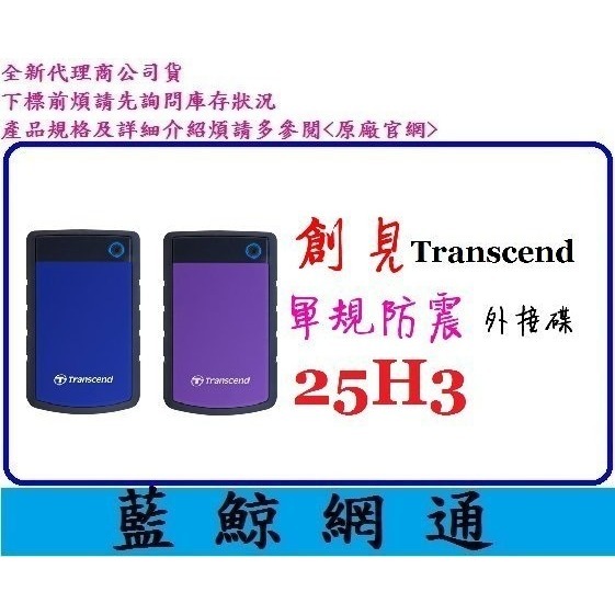 Transcend 創見 25H3P 軍規防震外接硬碟 2T 2TB TS2TSJ25H3B TS2TSJ25H3P