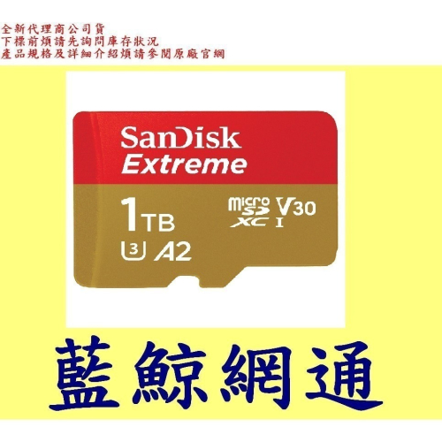 全新台灣代理商公司 SanDisk Extreme Micro SDXC MicroSD 1T 1TB U3 A2記憶卡