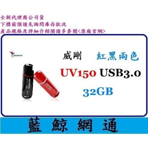 【藍鯨】全新代理商公司貨@ADATA 威剛 UV150 32G 32GB USB3.0 隨身碟 (紅/黑 隨機出)