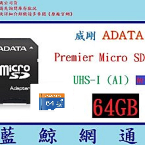 【藍鯨】威剛 ADATA Premier Micro SDHC U1 A1 64G 記憶卡64GB MicroSD c1
