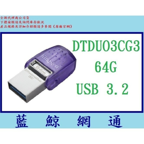 【藍鯨】全新公司貨 金士頓 Kingston DTDUO3CG3 64GB 64G USB 3.2 Gen 1 隨身碟 64GB