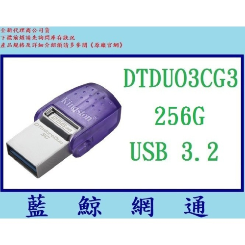 【藍鯨】全新公司貨 金士頓 Kingston DTDUO3CG3 256GB 256G USB3.2 Gen1 隨身碟