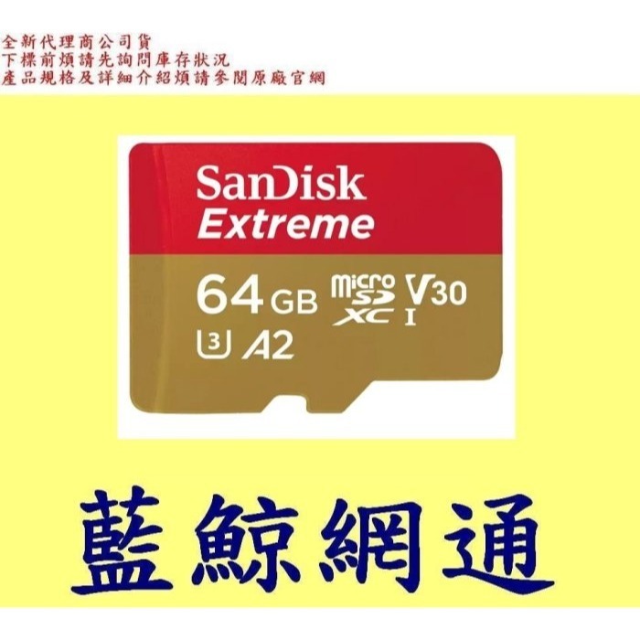 台灣代理SanDisk Extreme Micro SDXC MicroSD 64G 64GB U3 A2 V30記憶卡