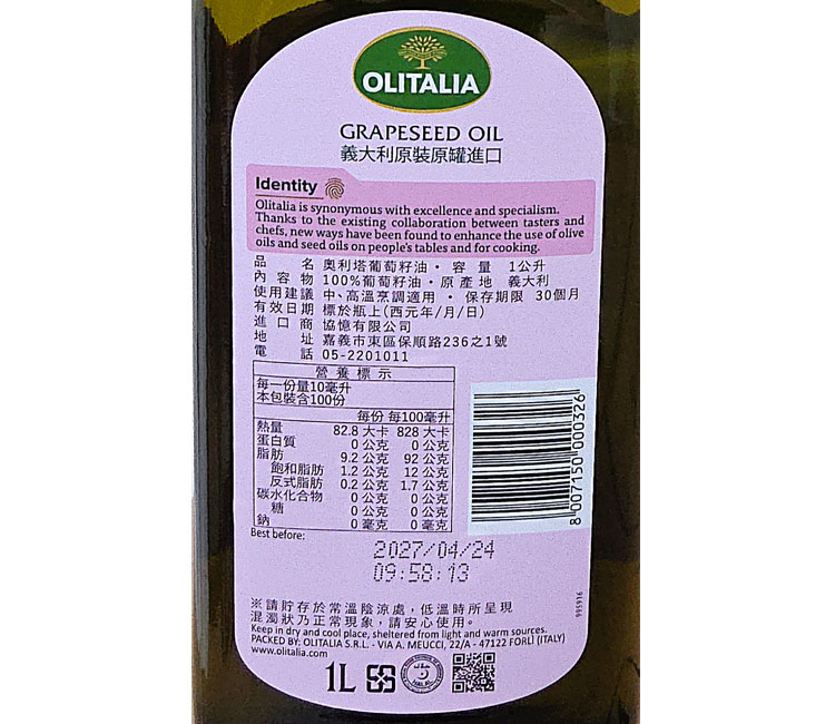 品名:奧利塔葡萄籽油