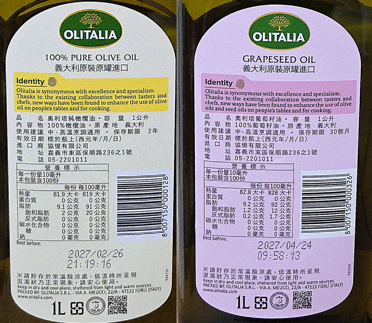 品名:奧利塔葡萄籽油