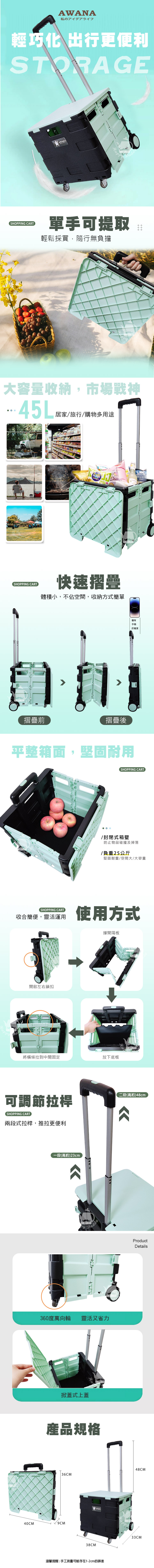 產品尺寸 : 拉桿(高) 48cm