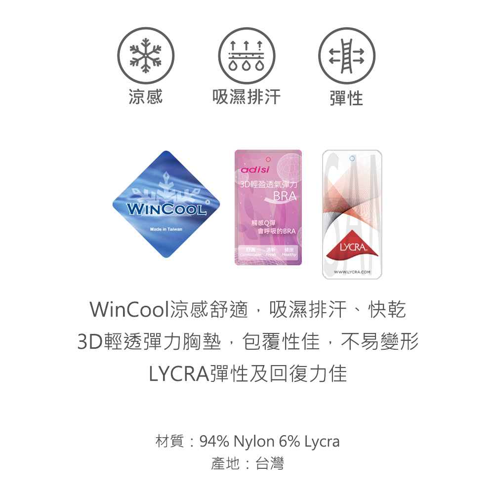 - 3D輕透彈力胸墊,包覆性佳,不易變形