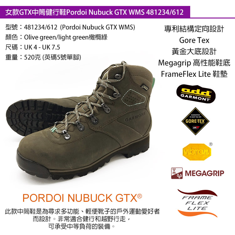 Garmont 女款 002408 GTX中筒健行鞋 Pordoi Nubuck WMS (481234/612)