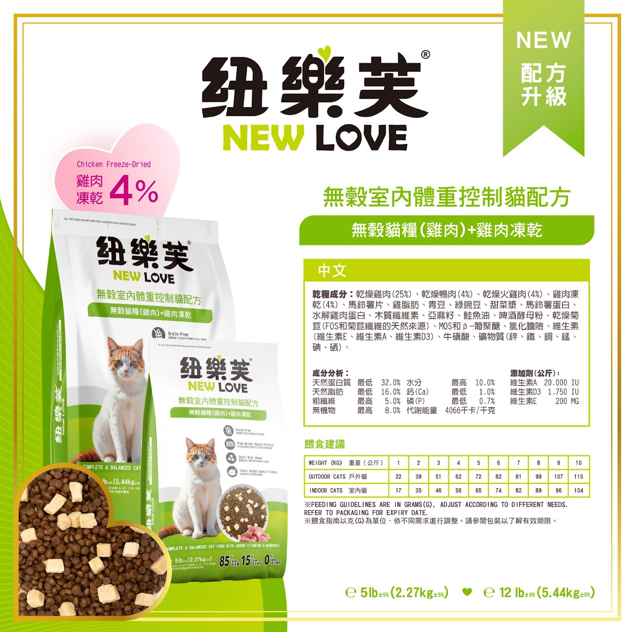 【毛小孩】紐樂芙new-love-無穀貓飼料( 幼貓、體重控制、化毛、泌尿道保健、護膚亮毛 機能飼料) 300g/包