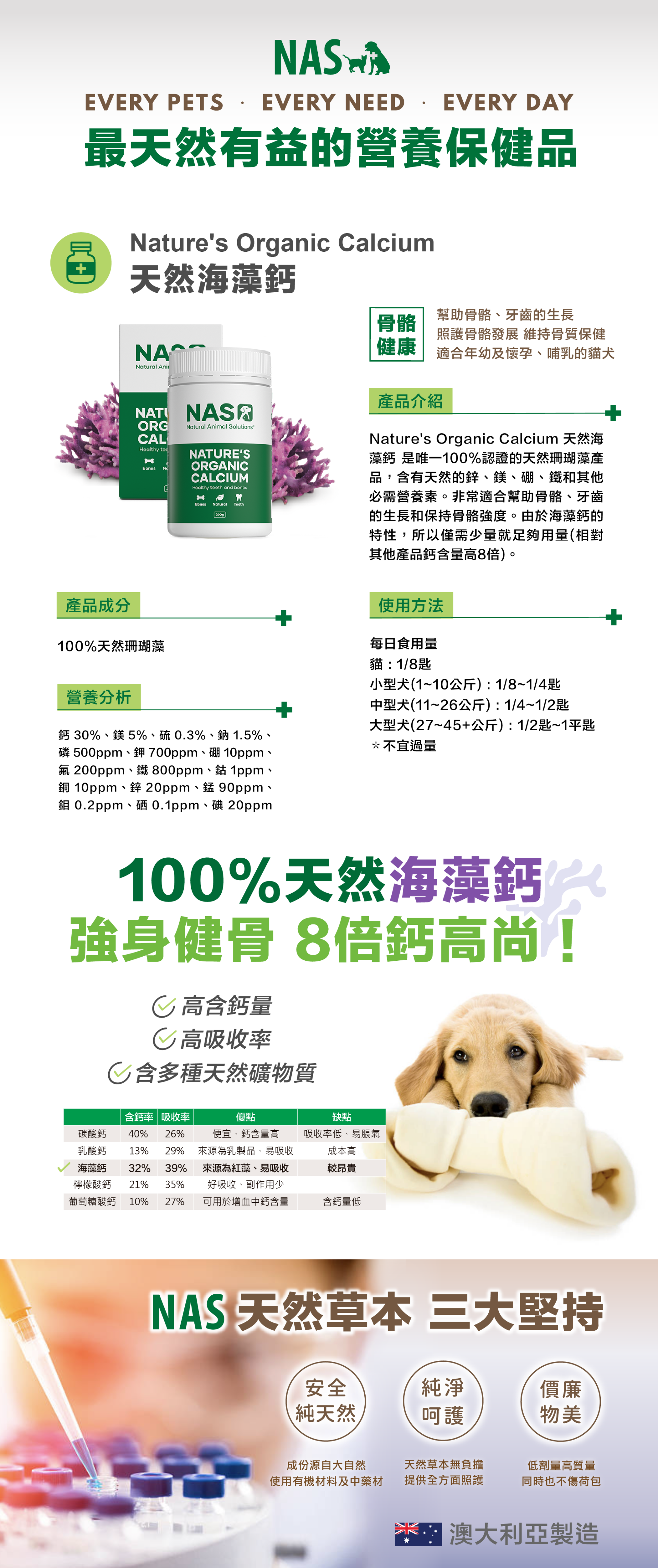 選用100% NASAA認證的「海藻鈣」